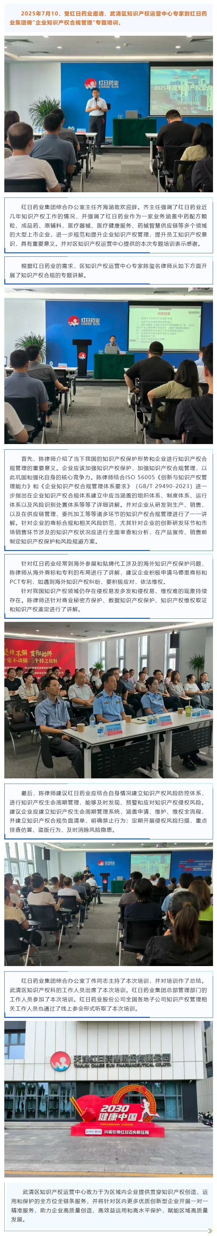 武清区知识产权运营中心为红日药业集团做“企业知识产权合规管理”专题培训