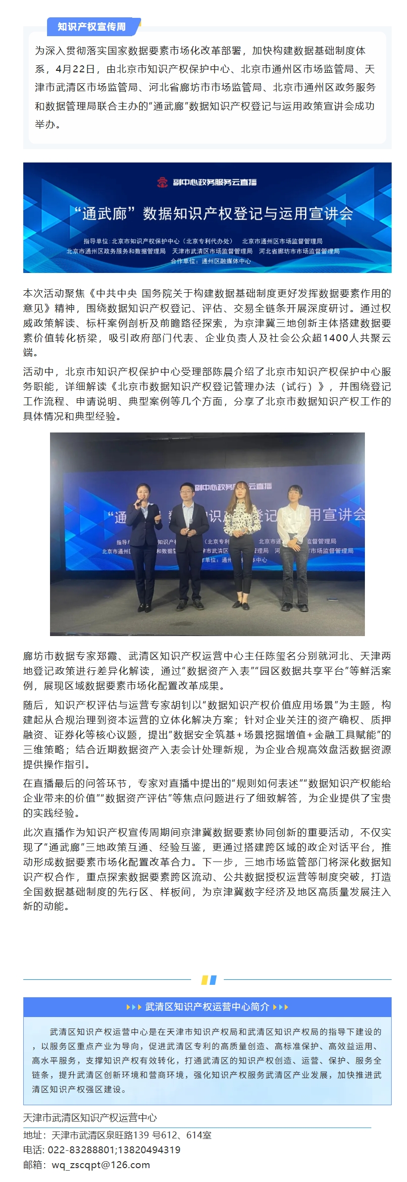 4•26知识产权宣传周 | “通武廊”数据知识产权创新实践宣讲会成功举办