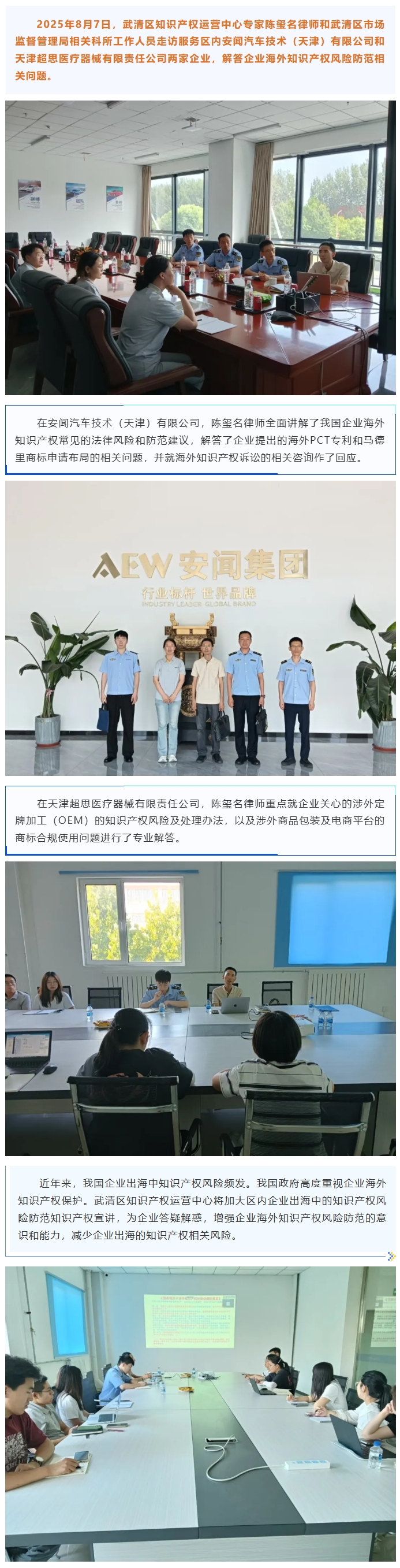 武清区知识产权运营中心走访区内企业,解答企业海外知识产权风险防范相关问题